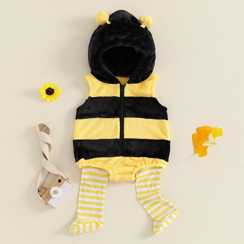 Baby Bee Costume Sleeveless Hooded Romper Long Socks Set Infant Bumble Bee Costume Newborn OutfitFeatures: