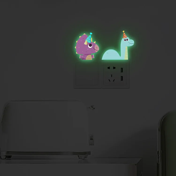 Cartoon Little Dinosaur Luminous Wall Sticker Kids Room Switch Decoration Decals Bedroom Background Decor Glow In The Dark Mural