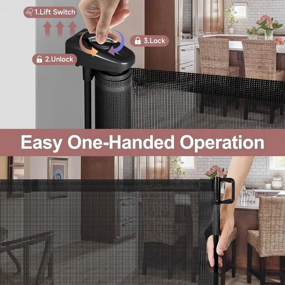 Retractable baby gates are easy to use in high-traffic areas, such as easily