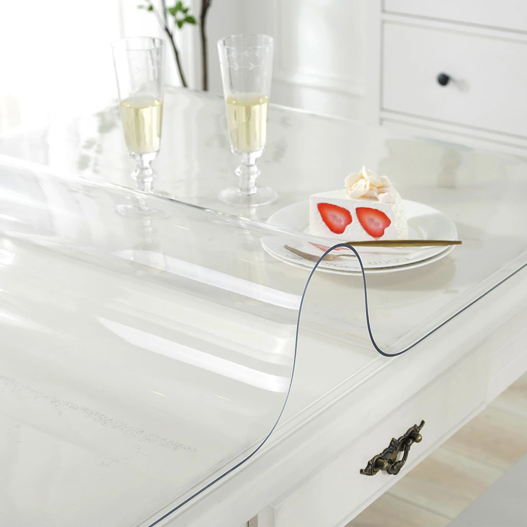 SucceBuy Multi-size 1.5/2mm Tablecloth Protector Table Cover Mat PVC Soft Waterproof Clear Water Resistant Easy Clean